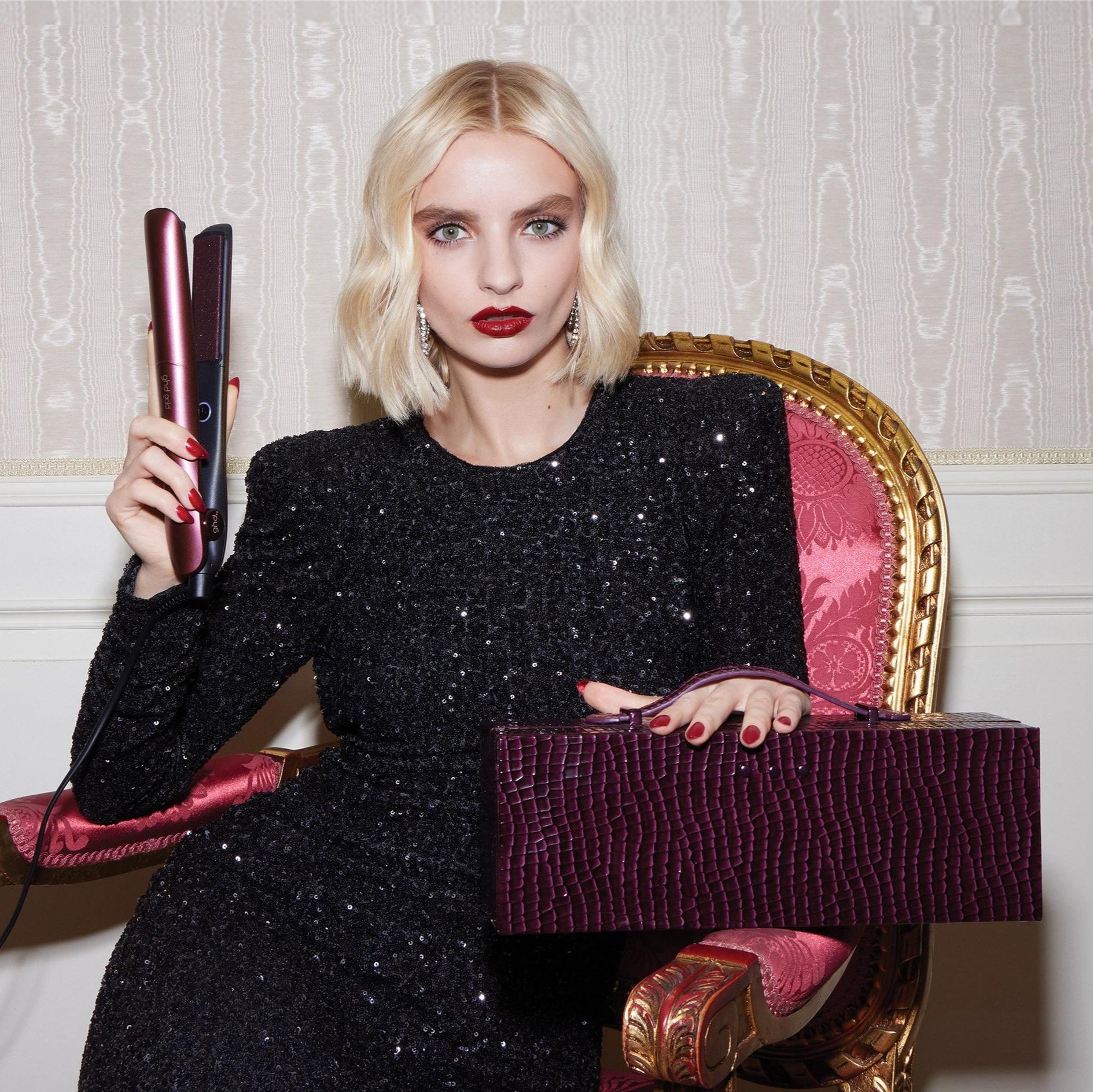 Step into festive glamour with the ghd cherry chic collection — a limited-edition series featuring a striking cherry red design. Perfect for holiday getaways or elevating your everyday routine, the ghd gold® professional advanced hair straightener comes with a stylish travel case inspired by luxurious escapes. Equipped with dual-zone technology, it keeps the temperature at an ideal 185˚C across both plates, delivering smooth, shiny, and healthier-looking hair without damaging heat. Its ceramic floating plates ensure effortless glide to tame frizz and add shine, while the rounded shape lets you create sleek, curled, or wavy styles easily. With automatic sleep mode, universal voltage, and a long 2.7m cable, it offers safe, convenient styling wherever you go. Complete with a protective plate guard, this limited-edition tool combines performance and festive flair flawlessly.