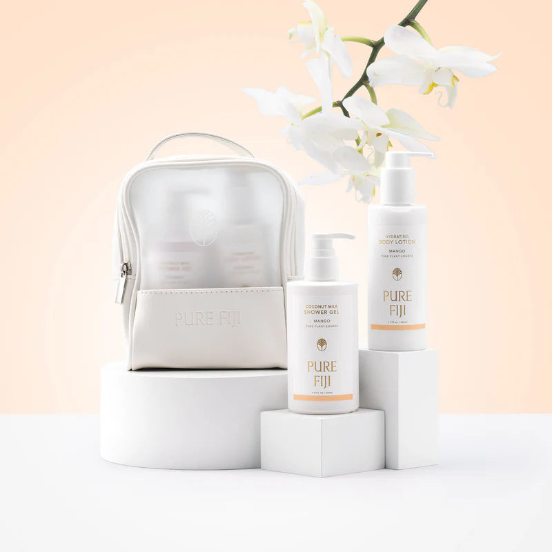 Experience the tropical luxury of Pure Fiji Body Mates - Mango, a delightful duo designed to nourish and invigorate your skin. This set includes the award-winning shower gel, infused with rich mango extracts and natural ingredients that cleanse gently while energizing your senses. Complementing this is the hydrating body lotion, which deeply moisturizes and softens your skin, leaving it silky smooth and subtly fragranced with luscious mango. Both items come neatly packed in a stylish, reusable toiletry bag, perfect for travel or everyday use. Treat yourself or gift someone special a refreshing escape to paradise.